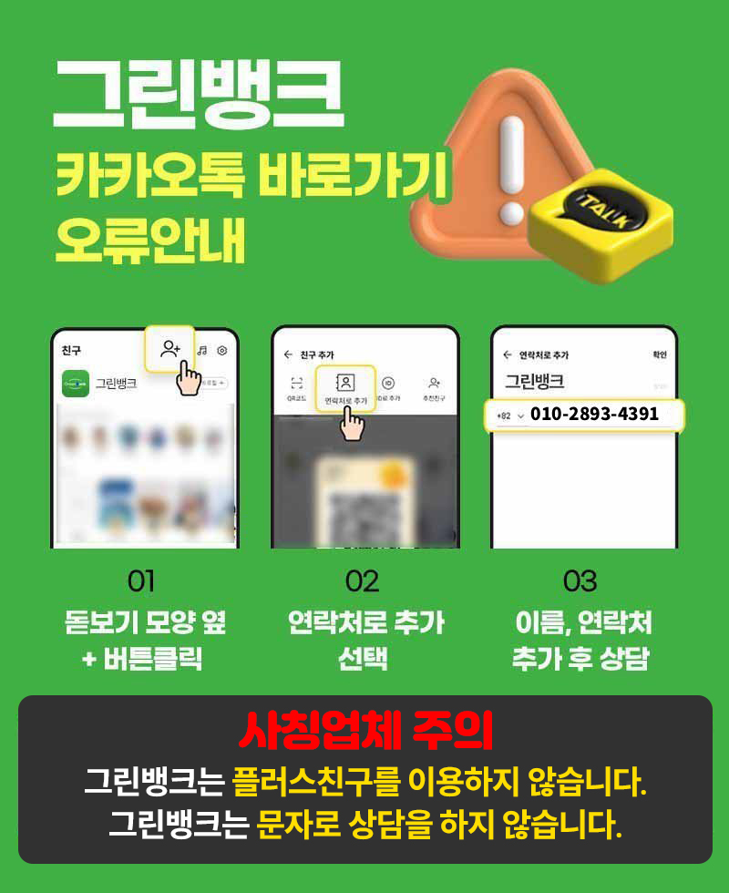 그린뱅크는 카카오톡 채널, 오픈채팅을 운영하지 않습니다.